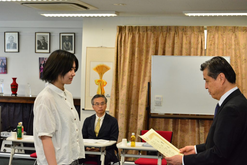 多数の応募の中から、友愛賞2作品と入選3作品が選ばれ、6月29日(日)に友愛サロンで表彰式が行われました。受賞者5名のうち2名が出席し、全員に表彰状・賞金・記念品が授与されました。
